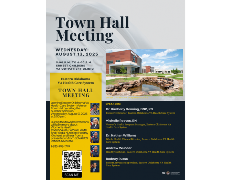 We invite you to attend our upcoming Veterans Affairs Town Hall Meeting organized by the Eastern Oklahoma VA Health Care System (EOVAHCS). This is a fantastic opportunity to: